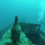 Travelling for 20 years, the ship "Mitilini" , hit a reef in a strong storm and sunk. The ship was full of the bottles it was transporting, which remain untouched under water.